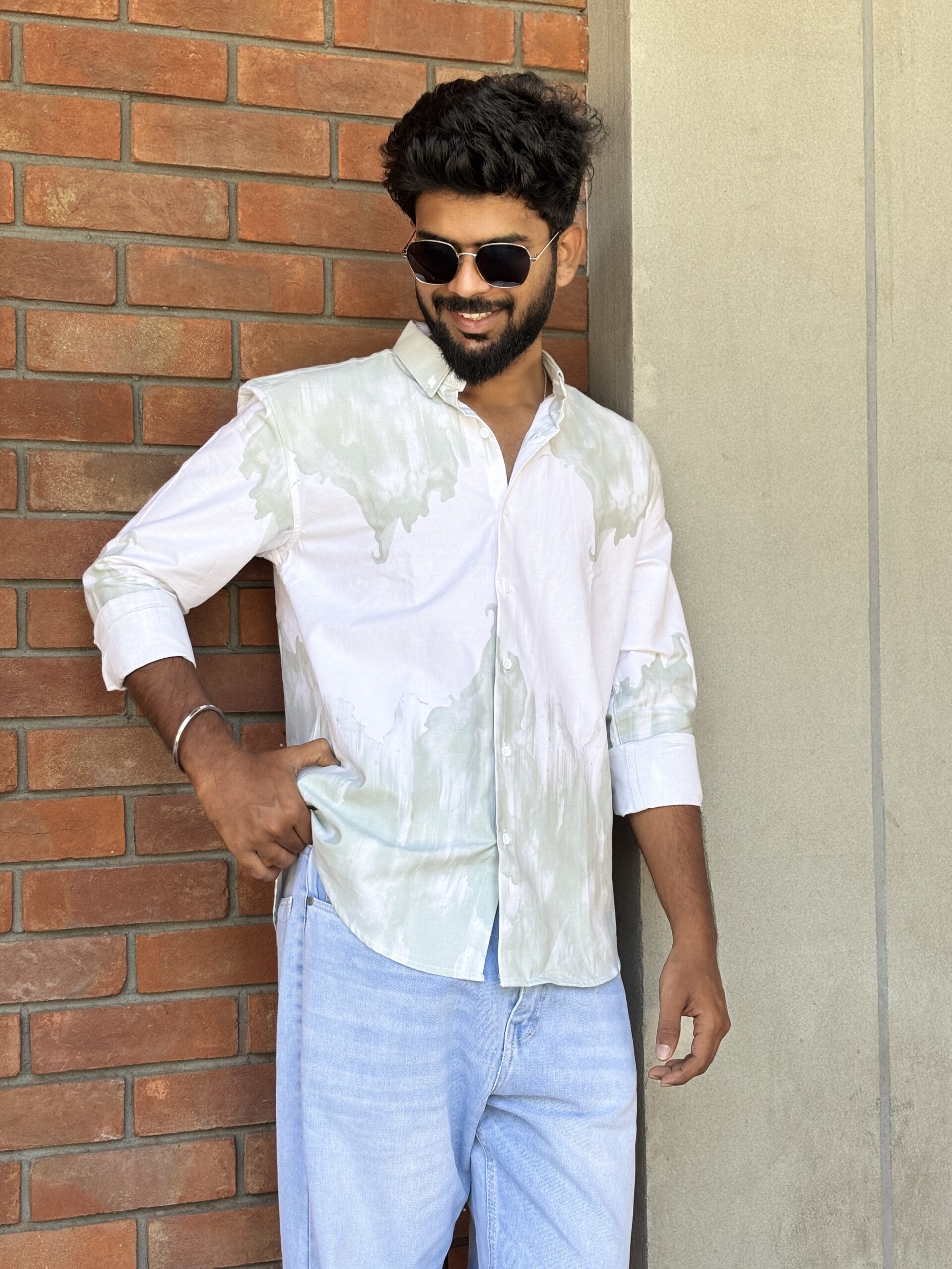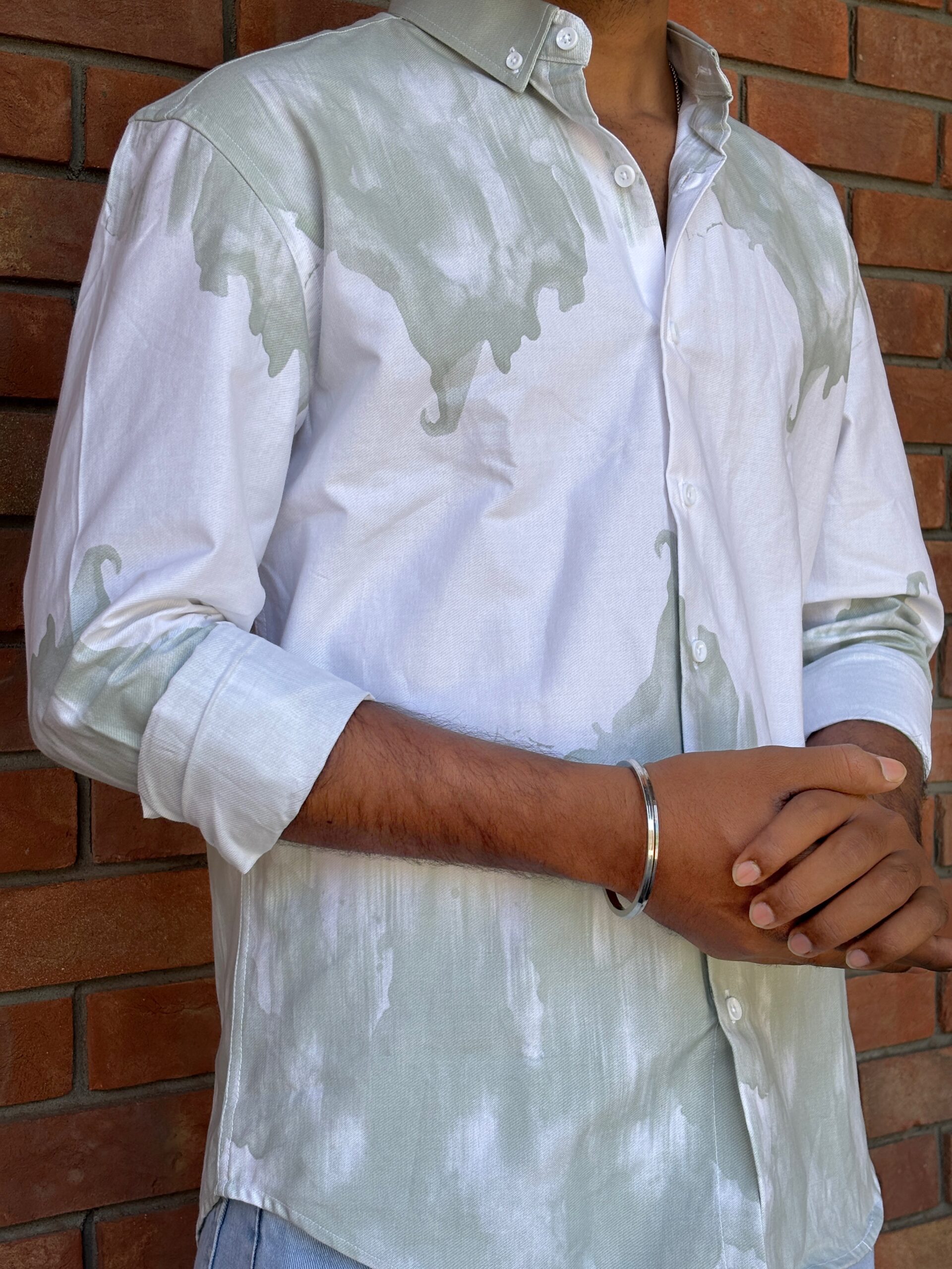 Acid-Washed Printed Cotton Shirt delivers an effortless edge with a relaxed silhouette and vintage-inspired finish. Crafted from 100% soft cotton, it features bold acid-wash effects and contemporary prints that add character and individuality. The understated detailing keeps the look versatile while offering a modern, worn-in vibe.