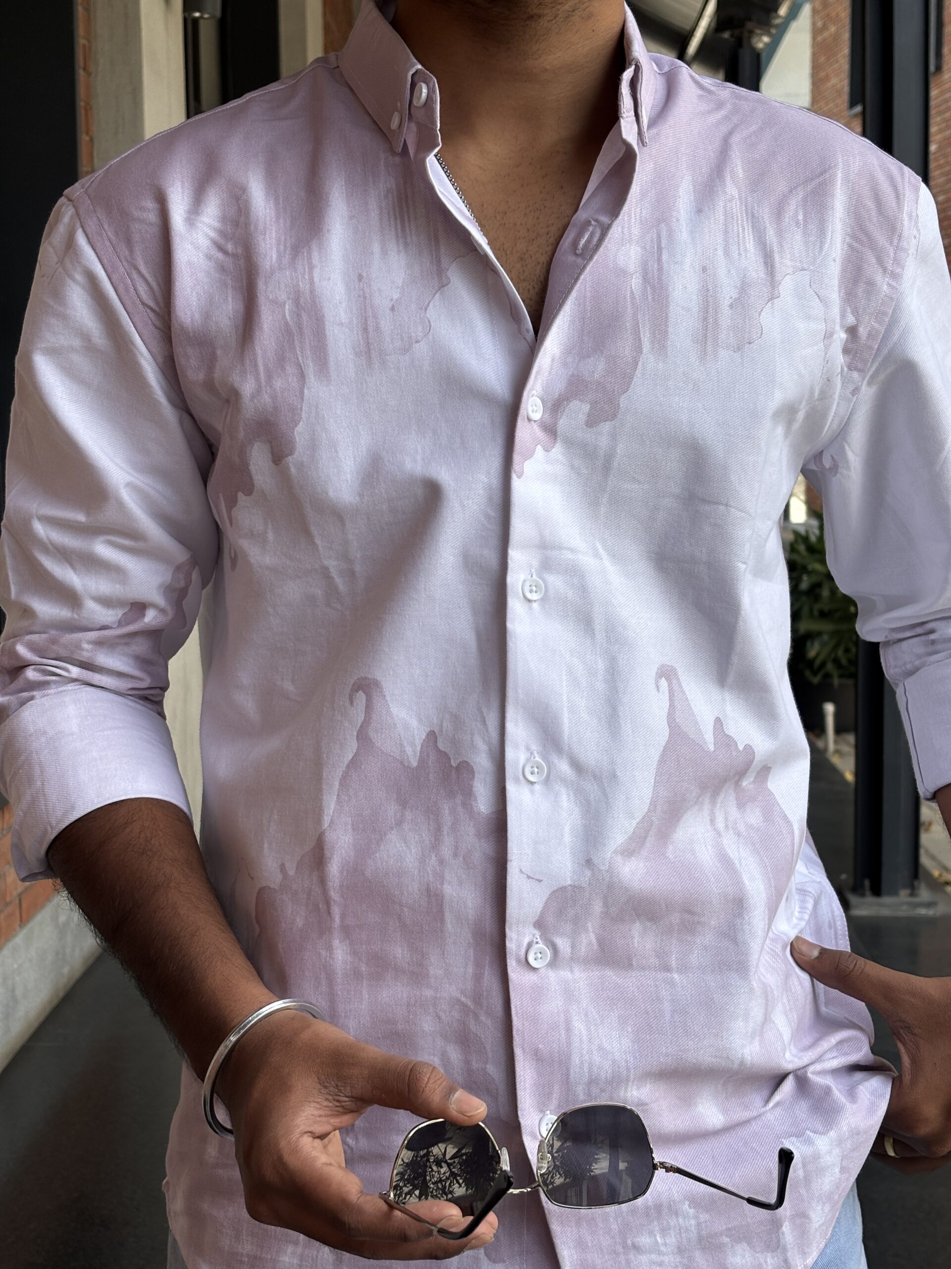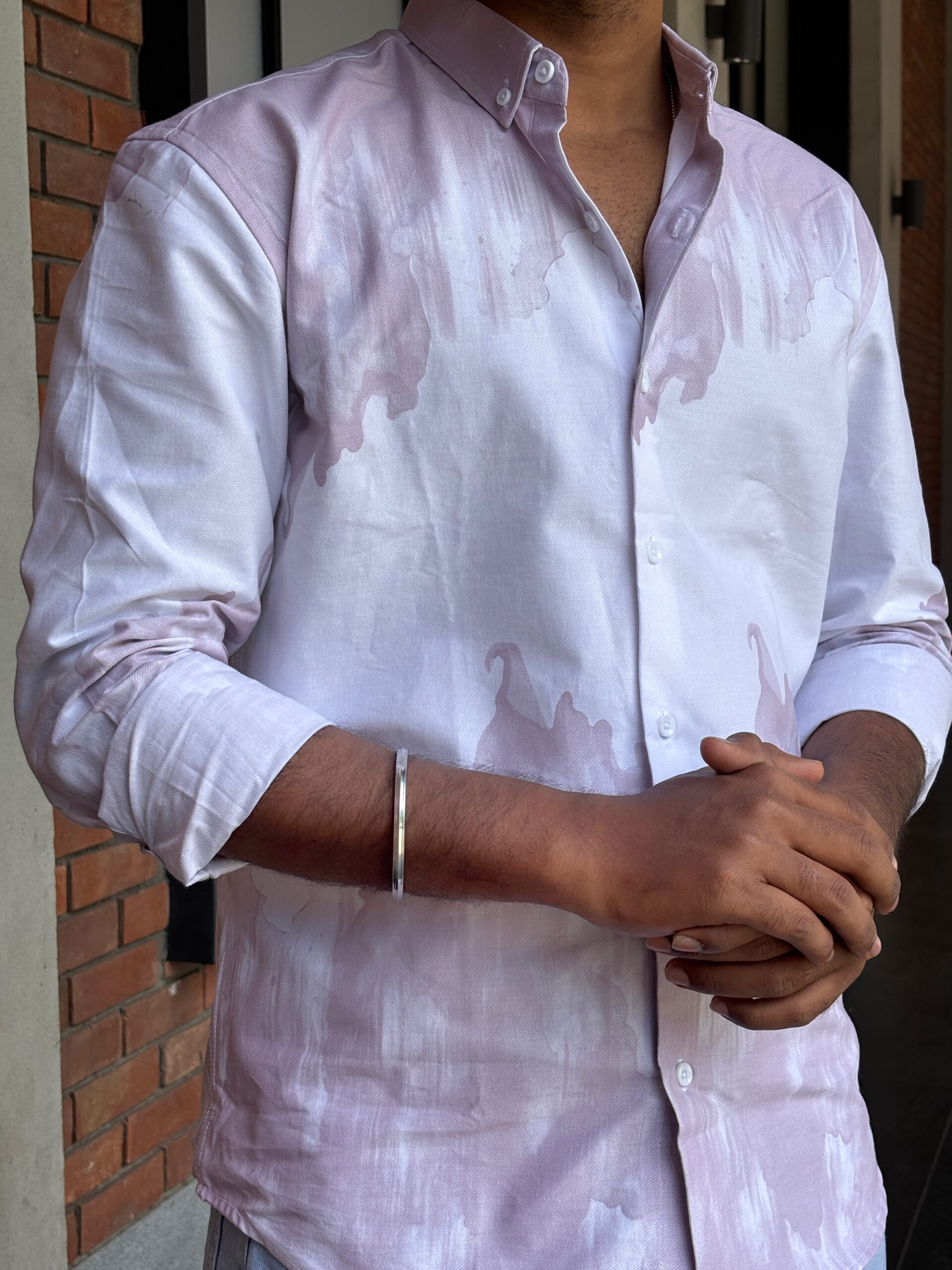Acid-Washed Printed Cotton Shirt delivers an effortless edge with a relaxed silhouette and vintage-inspired finish. Crafted from 100% soft cotton, it features bold acid-wash effects and contemporary prints that add character and individuality. The understated detailing keeps the look versatile while offering a modern, worn-in vibe.