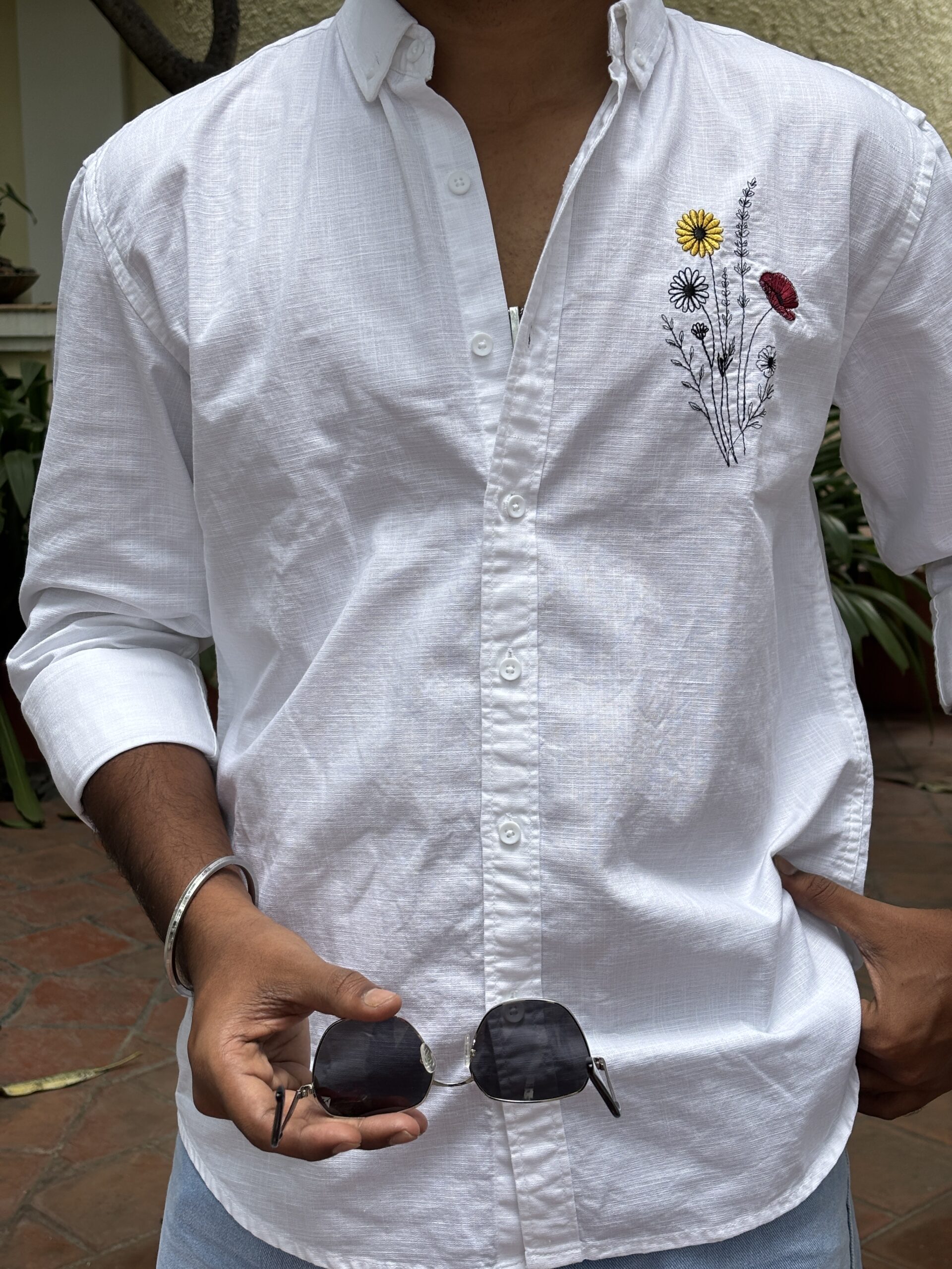 Designer Embroidered Linen Shirt brings effortless sophistication with a sleek, textured silhouette. Crafted from 100% premium linen, it features delicately hand-crafted embroidery that elevates the design with a refined touch of artistry. The minimal detailing ensures a rich look while keeping the style understated and versatile.