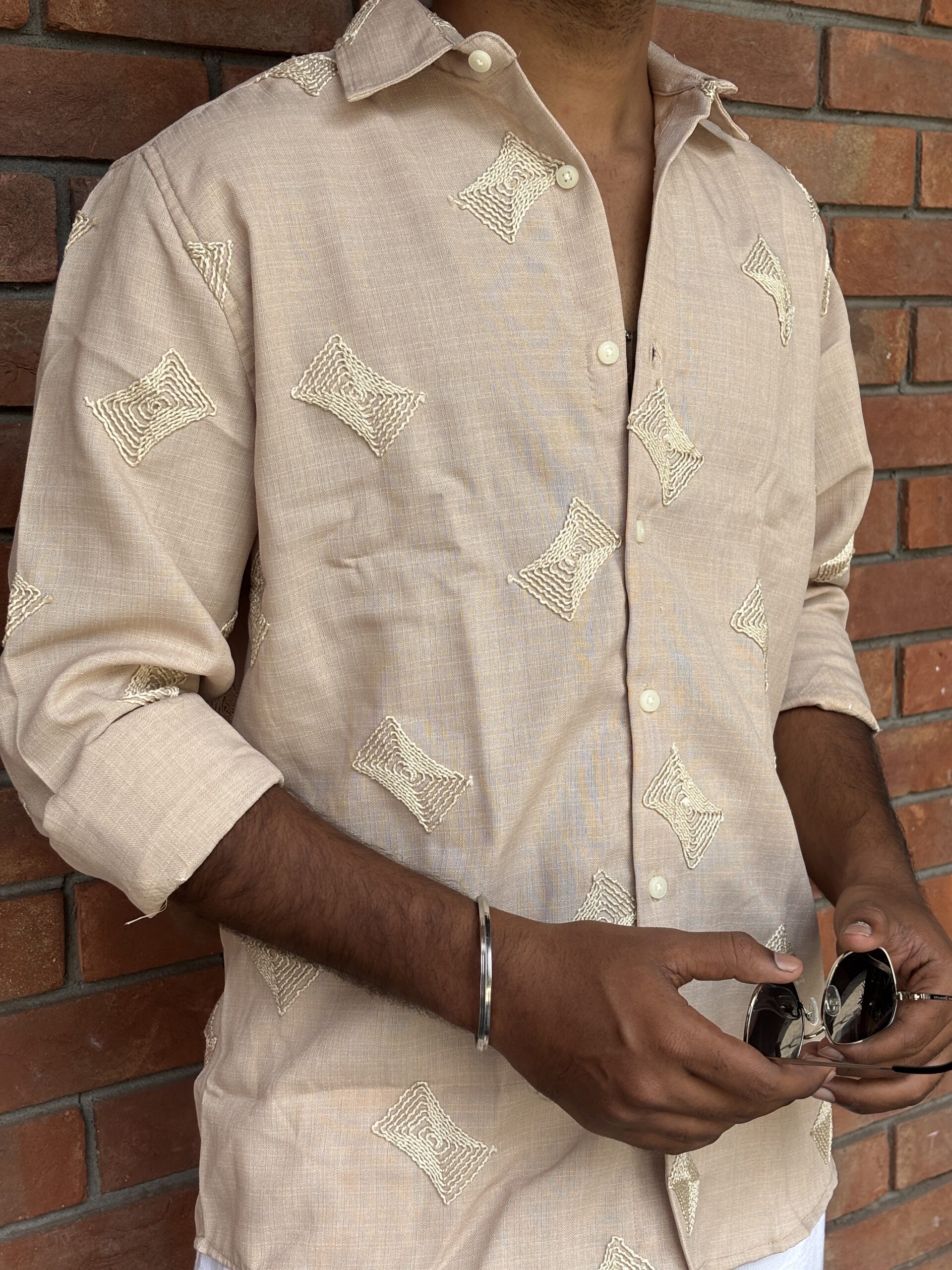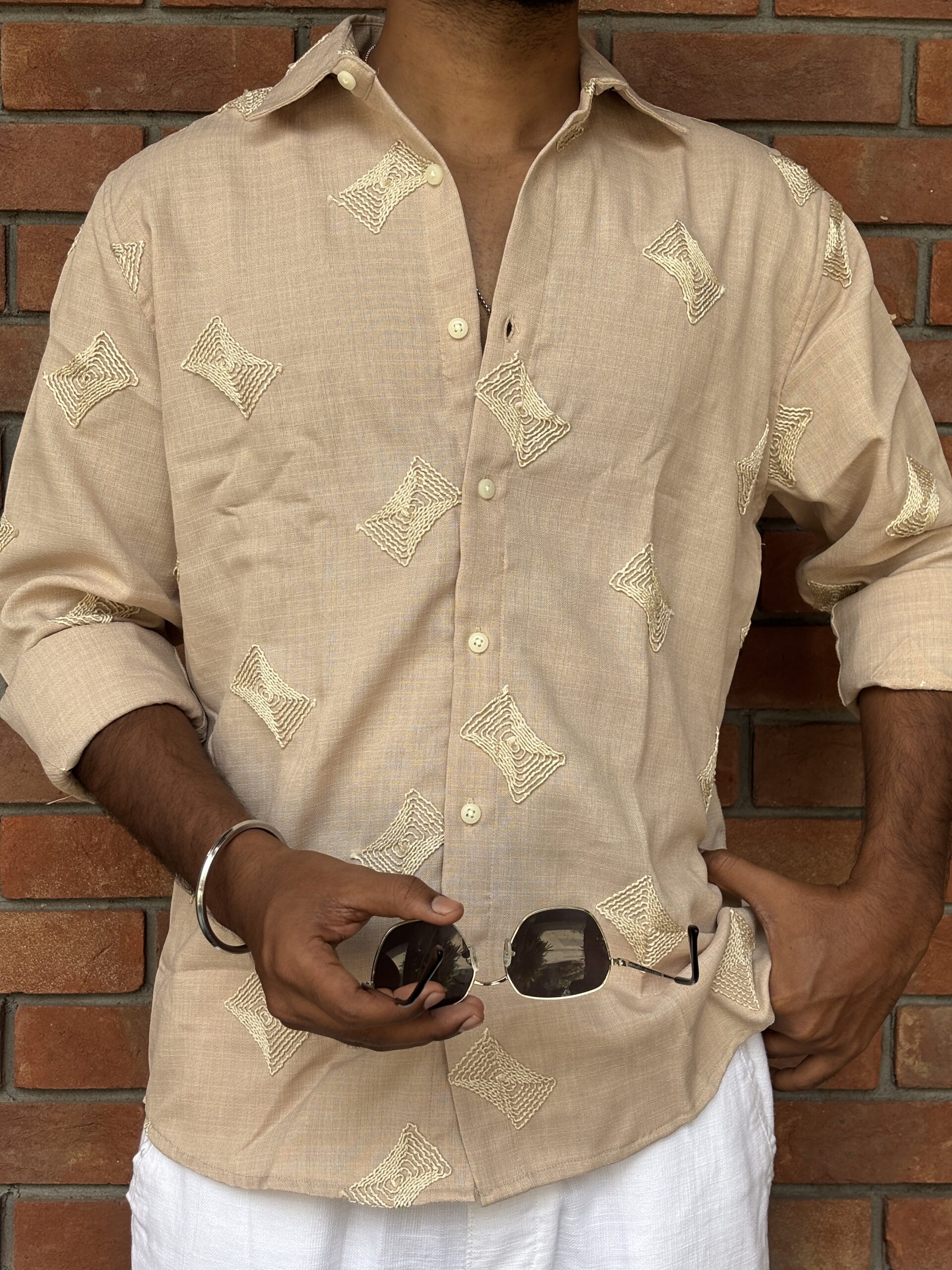 Embroidered Linen Shirt delivers effortless sophistication with a relaxed silhouette and a subtly textured finish. Crafted from premium linen, it features intricate embroidery that adds character and individuality. The refined detailing keeps the look versatile while offering a modern, easygoing charm.