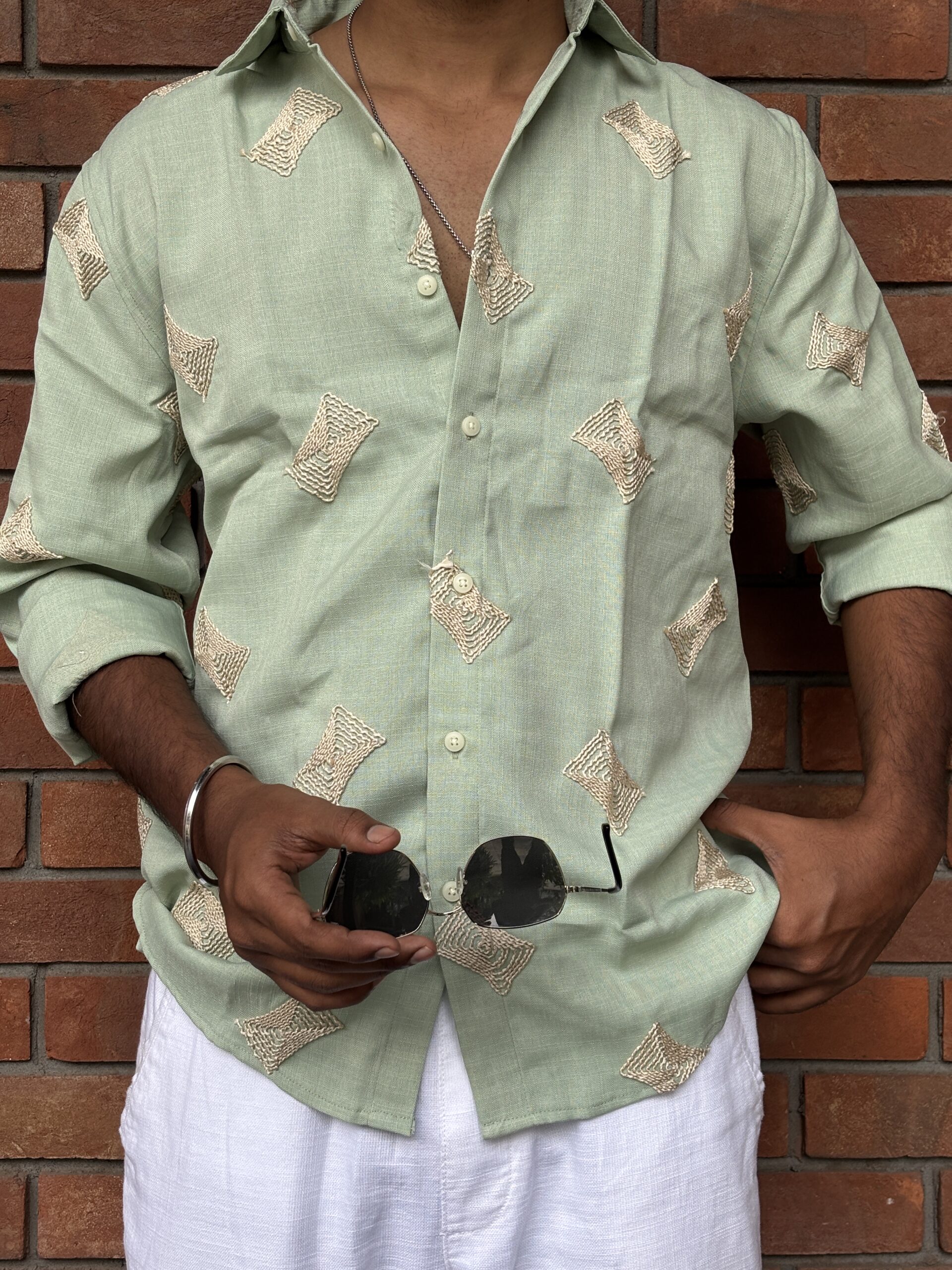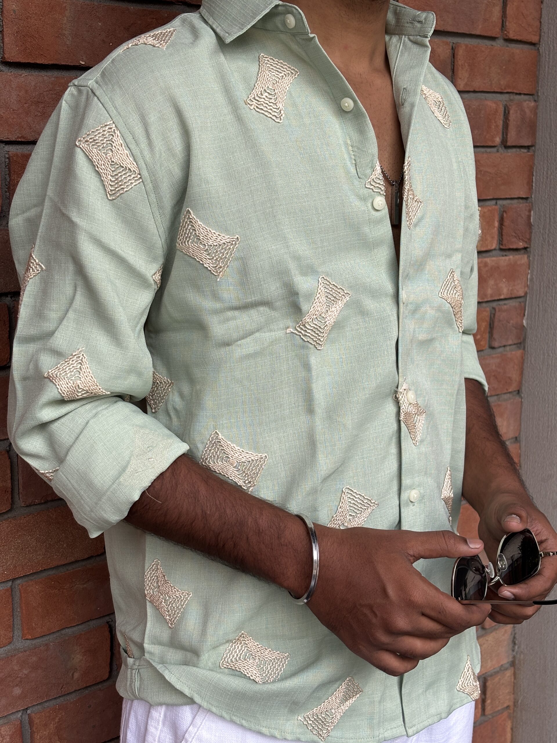 Embroidered Linen Shirt delivers effortless sophistication with a relaxed silhouette and a subtly textured finish. Crafted from premium linen, it features intricate embroidery that adds character and individuality. The refined detailing keeps the look versatile while offering a modern, easygoing charm.