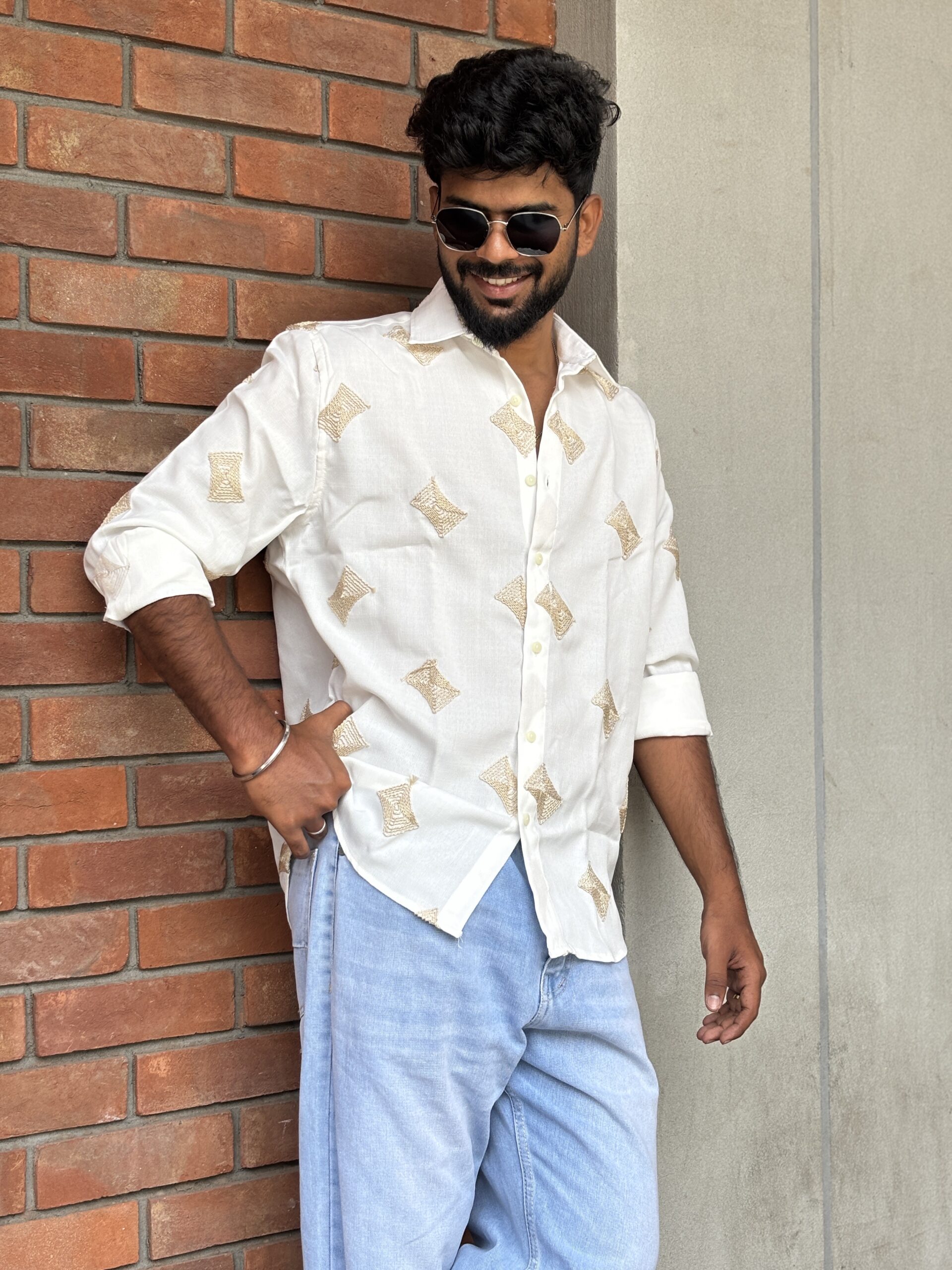 Intricate Embroidery: Delicate embroidered patterns enhance the shirt’s aesthetic with refined artistry and timeless appeal.