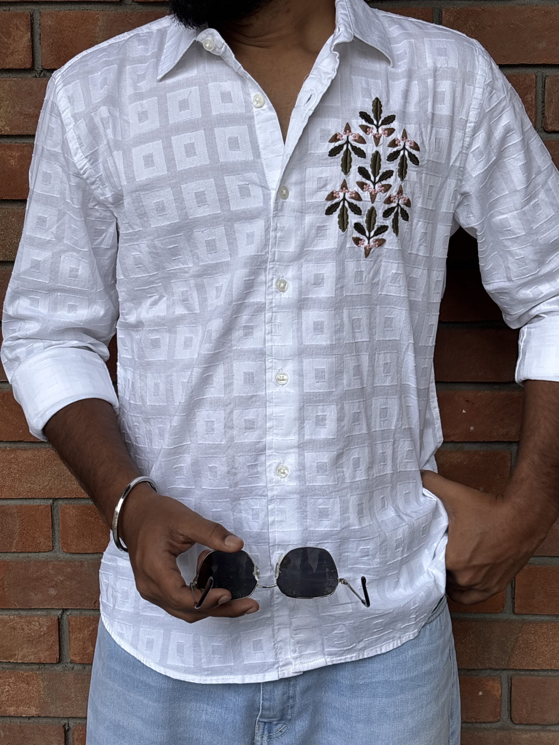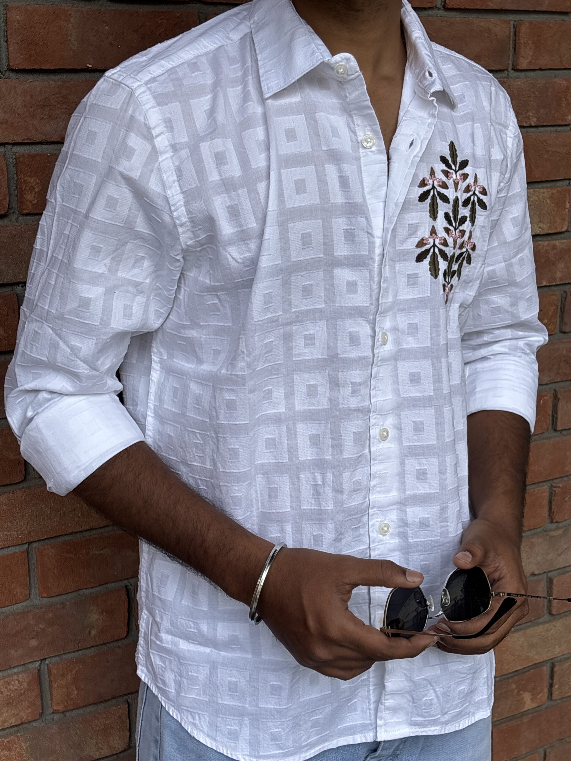 Textured Embroidery: Intricately crafted textured embroidery enhances the shirt’s appeal with artistic depth and timeless elegance.